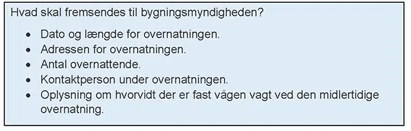 Hvad skal jeg gøre når jeg ønsker at afholde en midlertidig overnatning ?